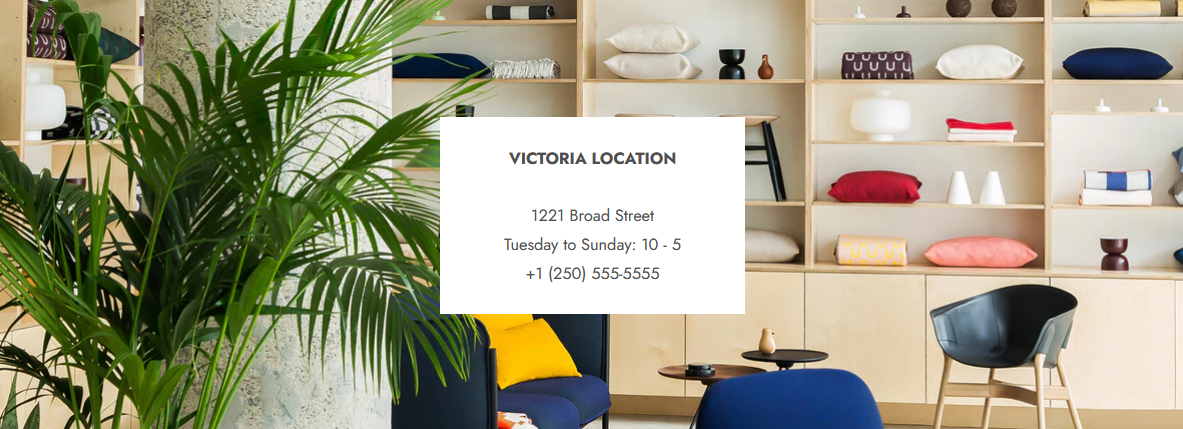 Within the Address and hours text box, you can add your store’s physical address and operating hours. It will appear directly below the Heading.